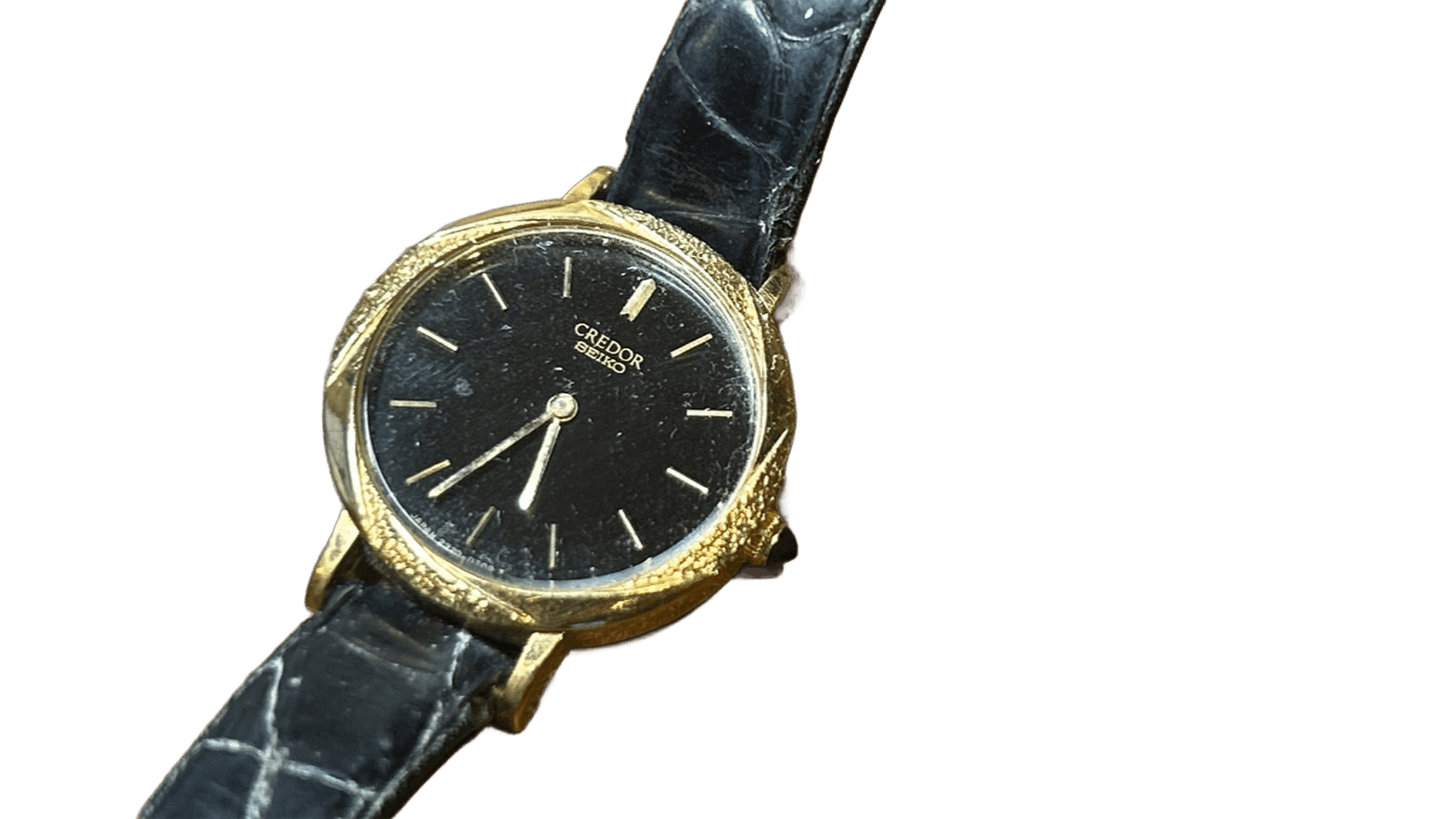 今回お持ち込みいただいたセイコー クレドール 2320-0090は、K18イエローゴールド素材が使用されているため、近年の金相場高騰を大きく反映した査定となりました。加えて、クレドールならではの上品なデザイン性もしっかり評価しております。ベルトは社外品で、全体的に使用に伴う汚れやダメージが見受けられましたが、素材価値とブランド性を踏まえ、今回の買取価格をご提示いたしました。